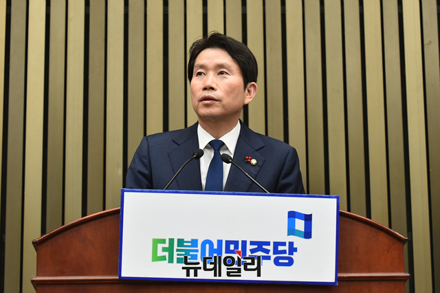 이인영 더불어민주당 원내대표가 23일 오후 국회에서 열린 의원총회에서 모두발언을 하고 있다.