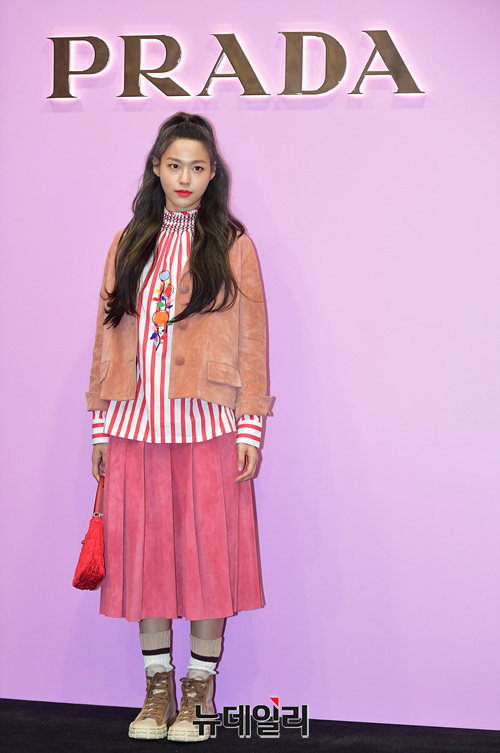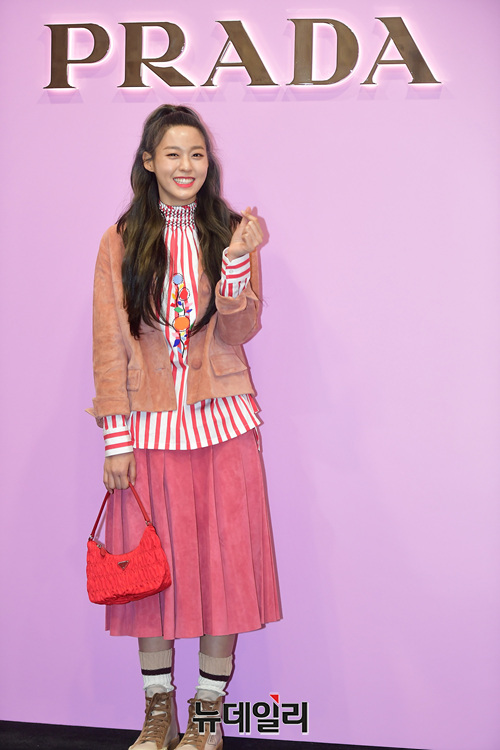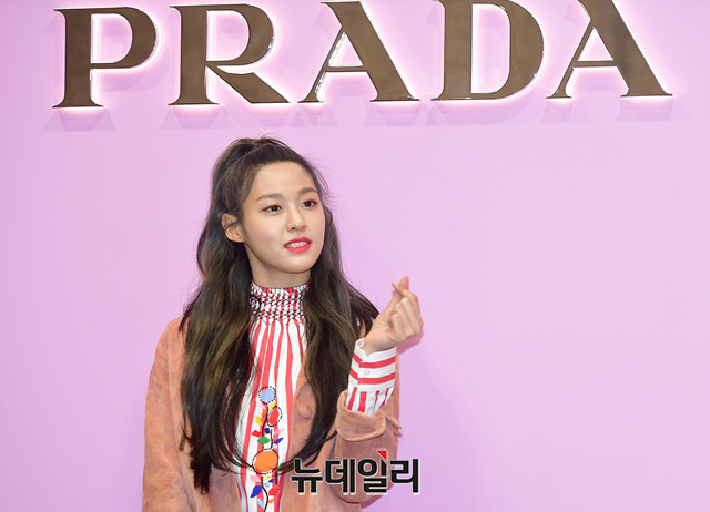 가수 설현이 23일 오후 서울 중구 롯데백화점 본점에 오픈한 '프라다 드림스케이프' 팝업스토어 오픈행사에서 포토타임을 갖고 있다.