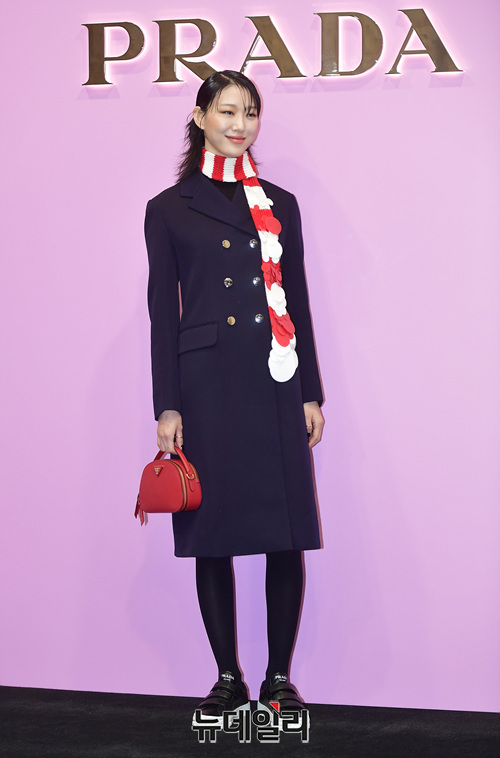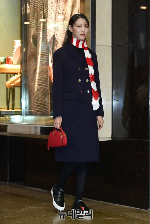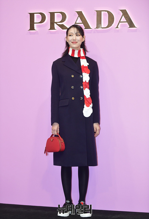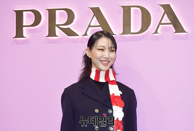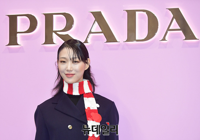 모델 최소라가 23일 오후 서울 중구 롯데백화점 본점에 오픈한 '프라다 드림스케이프' 팝업스토어 오픈행사에서 포토타임을 갖고 있다.