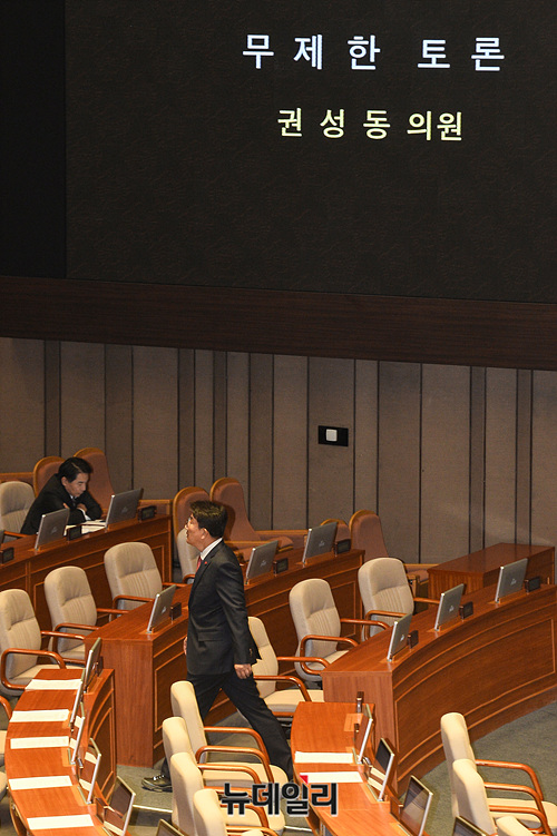 [포토] 필리버스터 도중 화장실 가는 권성동 의원