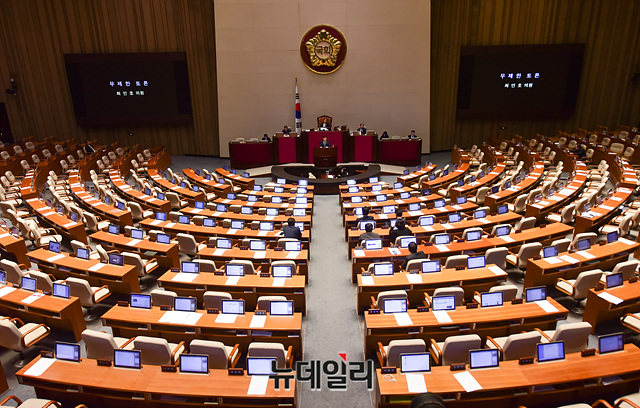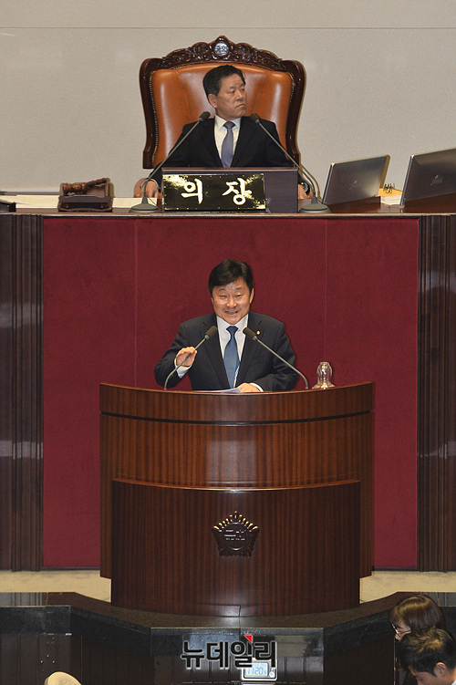 최인호 더불어민주당 의원이 24일 오전 국회 본회의장에서 열린 제372회 제1차 본회의에서 무제한 토론(필리버스터)을 하고 있다.