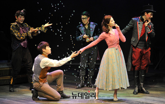 연극 환상동화 출연 배우들이 26일 오후 서울 종로구 동덕여대 공연예술센터 코튼홀에서 열린 프레스콜에서 하이라이트 장면을 시연하고 있다.