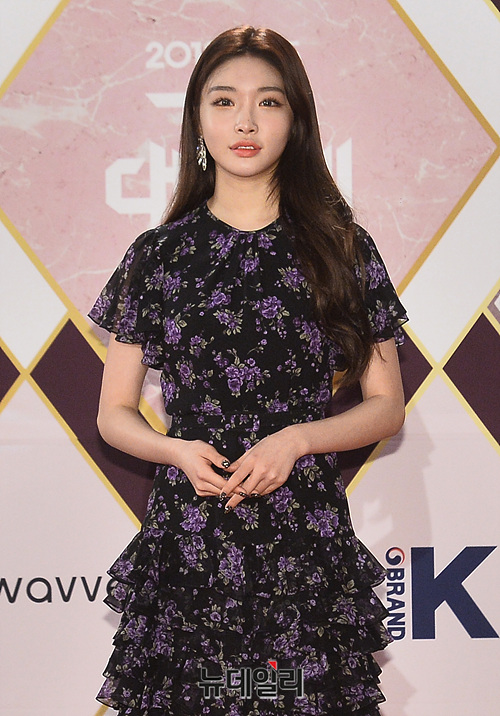 가수 청하가 27일 오후 경기 고양시 킨텍스에서 열린 '2019 KBS 가요대축제' 레드카펫 행사에서 포토타임을 갖고 있다.