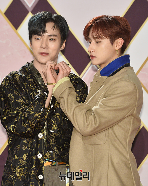 아이돌그룹 '몬스타엑스(MONSTA X)'가 27일 오후 경기 고양시 킨텍스에서 열린 '2019 KBS 가요대축제' 레드카펫 행사에서 포토타임을 갖고 있다.