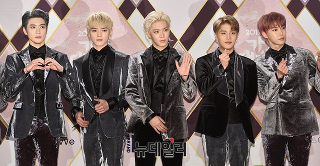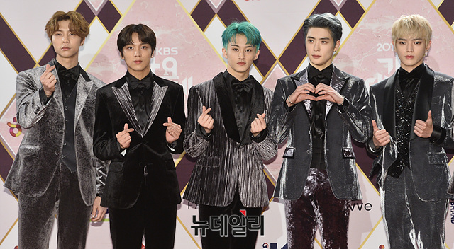아이돌그룹 'NCT 127(엔씨티 127)'이 27일 오후 경기 고양시 킨텍스에서 열린 '2019 KBS 가요대축제' 레드카펫 행사에서 포토타임을 갖고 있다.