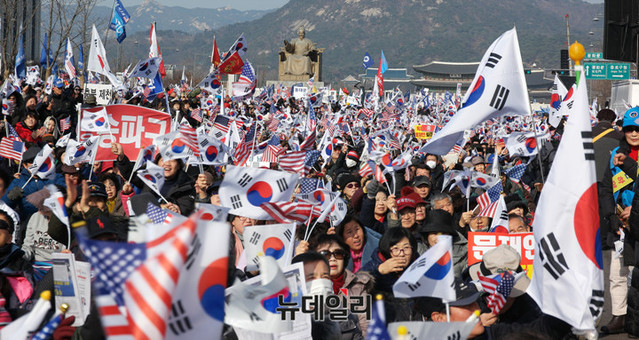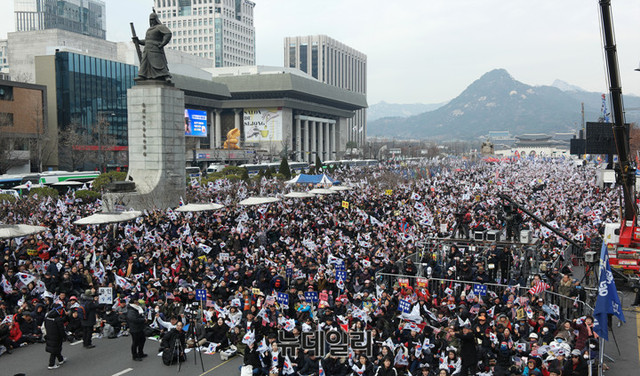 [포토] 2019 마지막 주말, 태극기 물결 가득한 광화문광장