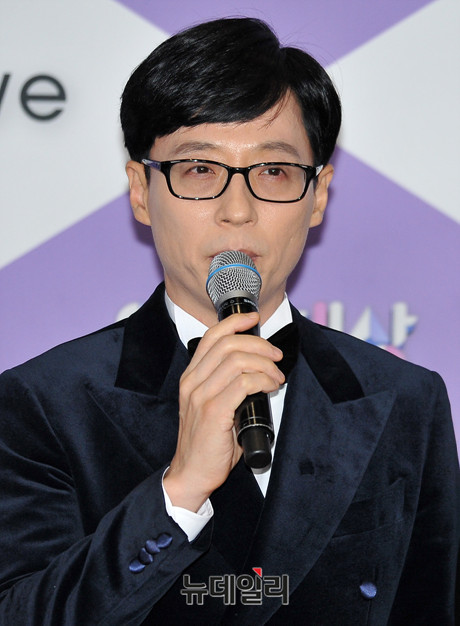 방송인 유재석이 28일 오후 서울 상암동 SBS프리즘타워에서 열린 '2019 SBS 연예대상' 포토월 행사에서 인사말을 하고 있다.