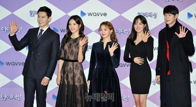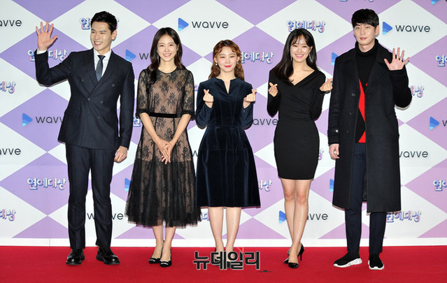 SBS 아나운서 김주우(왼쪽부터), 장예원, 김수민, 주시은 ,김윤상이 28일 오후 서울 상암동 SBS프리즘타워에서 열린 '2019 SBS 연예대상' 포토월 행사에서 포즈를 취하고 있다.