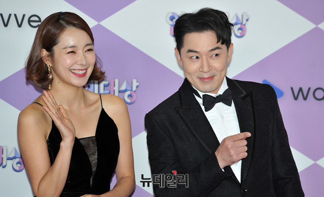 배우 소이현과 방송인 붐이 28일 오후 서울 상암동 SBS프리즘타워에서 열린 '2019 SBS 연예대상' 포토월 행사에서 포즈를 취하고 있다.