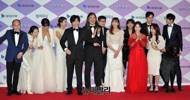 SBS 예능 '불타는 청춘' 멤버 김완선, 김광규, 김도균, 최재훈, 최성국, 최민용, 구본승, 브루노, 김혜림, 박선영, 이연수, 조하나, 이의정, 강경헌, 안혜경이 28일 오후 서울 상암동 SBS프리즘타워에서 열린 '2019 SBS 연예대상' 포토월 행사에서 포즈를 취하고 있다.