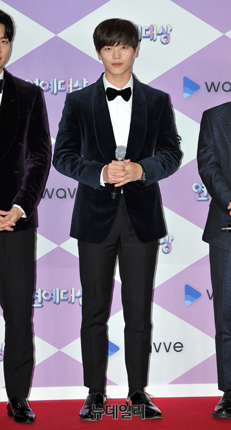 배우 육성재가 28일 오후 서울 상암동 SBS프리즘타워에서 열린 '2019 SBS 연예대상' 포토월 행사에서 인사말을 하고 있다.