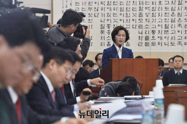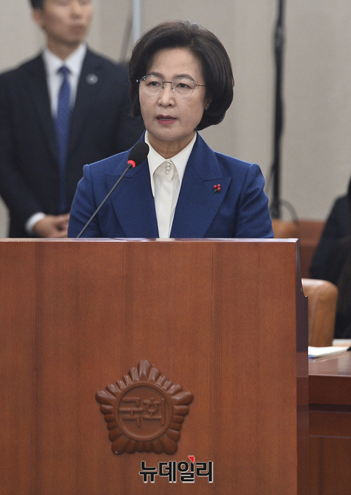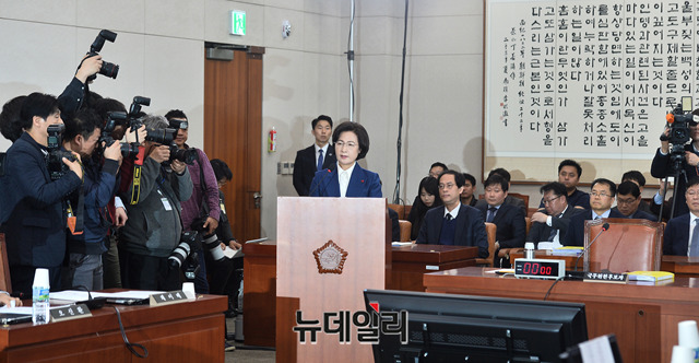 추미애 법무부 장관 후보자가 30일 오전 국회 법제사법위원회에서 열린 인사청문회에서 모두발언을 하고 있다.
