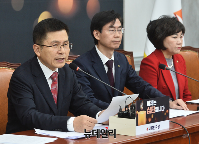 황교안 자유한국당 대표가 30일 오전 국회에서 열린 최고위원회의에서 모두발언을 하고 있다.