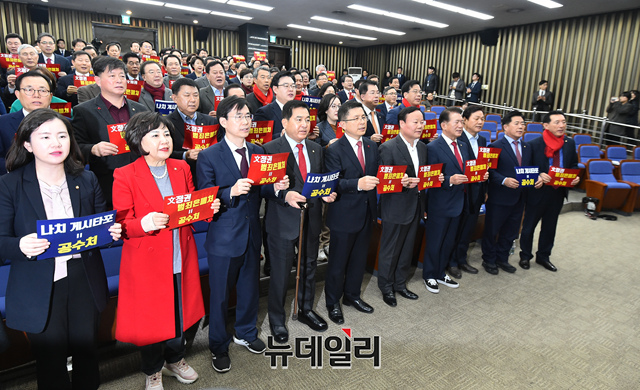 [포토] 공수처법 반대 구호 외치는 자유한국당