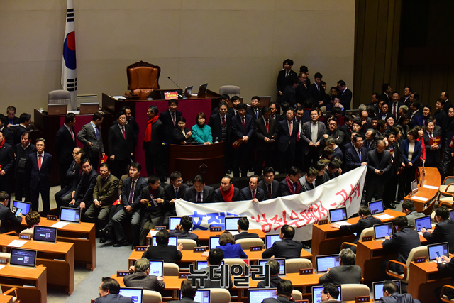 [포토] 본회의장 발언대서 농성하는 자유한국당