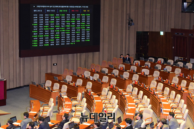 문희상 국회의장이 30일 오후 국회에서 열린 본회의에서 고위공직자범죄수사처 설치 및 운영에 관한 법률안(공수처법)의 통과를 알리고 있다.