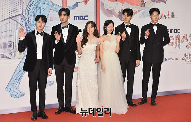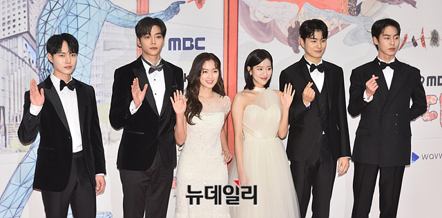 '어쩌다 발견한 하루(왼쪽부터 이태리, 로운, 김혜윤, 이나은, 정건주, 이재욱)' 출연진들이 30일 오후 서울 마포구 MBC에서 열린 '2019 MBC 연기대상' 레드카펫 행사에서 포토타임을 갖고 있다.