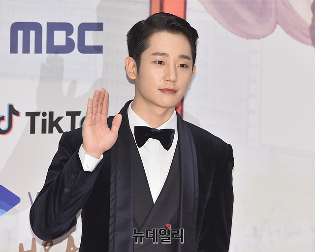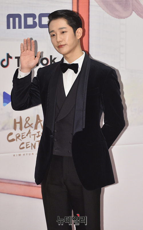 배우 정해인이 30일 오후 서울 마포구 MBC에서 열린 '2019 MBC 연기대상' 레드카펫 행사에서 포토타임을 갖고 있다.