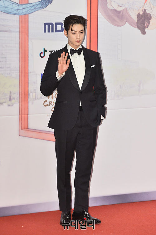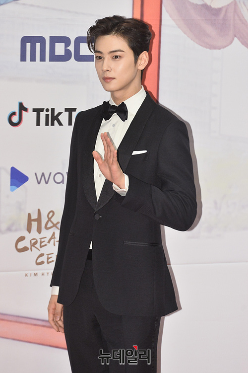 배우 차은우가 30일 오후 서울 마포구 MBC에서 열린 '2019 MBC 연기대상' 레드카펫 행사에서 포토타임을 갖고 있다.
