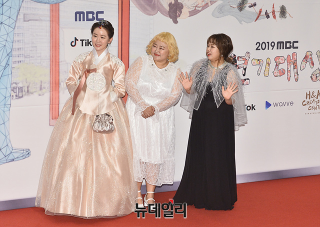 작가 김현정(왼쪽부터), 개그우먼 홍윤화, 홍현희가 30일 오후 서울 마포구 MBC에서 열린 '2019 MBC 연기대상' 레드카펫 행사에서 포토타임을 갖고 있다.