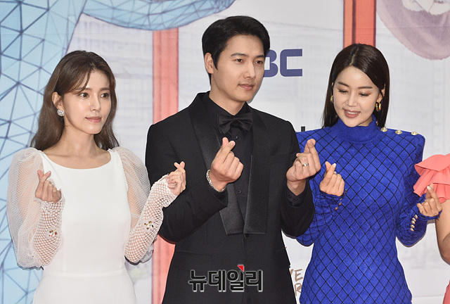 '황금정원(왼쪽부터 이상우, 한지혜, 정영주, 정시아, 오지은, 이태성)' 출연진들이 30일 오후 서울 마포구 MBC에서 열린 '2019 MBC 연기대상' 레드카펫 행사에서 포토타임을 갖고 있다.