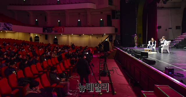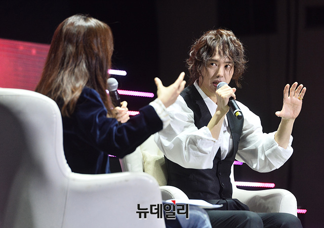 가수 양준일이 31일 오후 서울 광진구 세종대학교 대양홀에서 열린 공식 팬미팅 '2019 양준일의 선물' 기자간담회에서 취재진의 질문에 답하고 있다.
