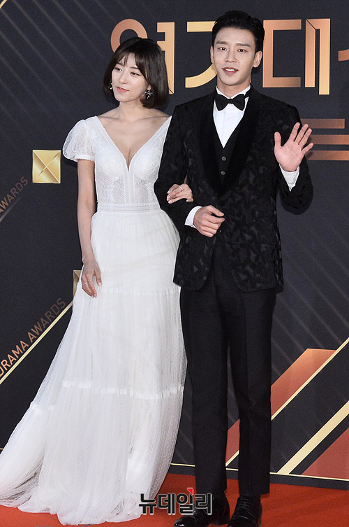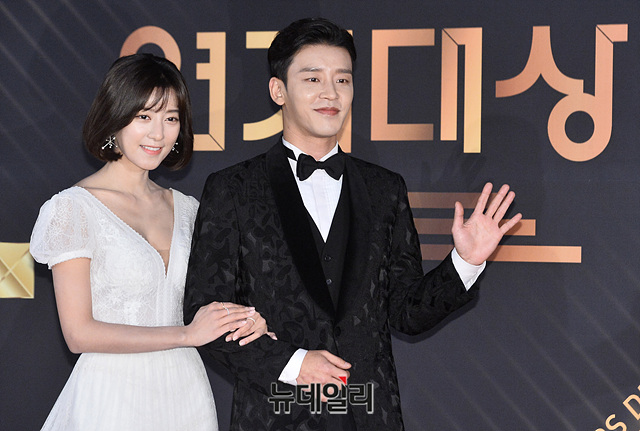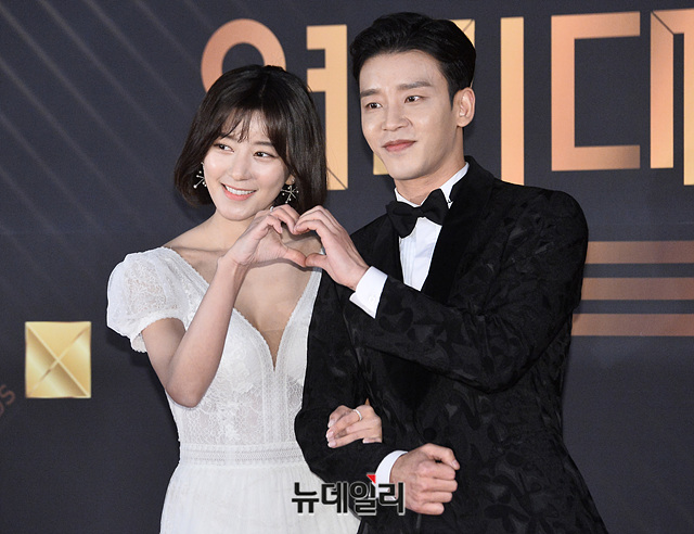 배우 최윤소(왼쪽), 설정환이 31일 오후 서울 여의도 KBS에서 열린 '2019 KBS 연기대상' 레드카펫 행사에서 포토타임을 갖고 있다.