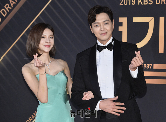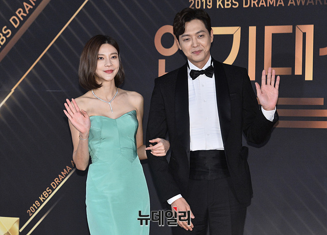 배우 차예련(왼쪽), 김흥수가 31일 오후 서울 여의도 KBS에서 열린 '2019 KBS 연기대상' 레드카펫 행사에서 포토타임을 갖고 있다.