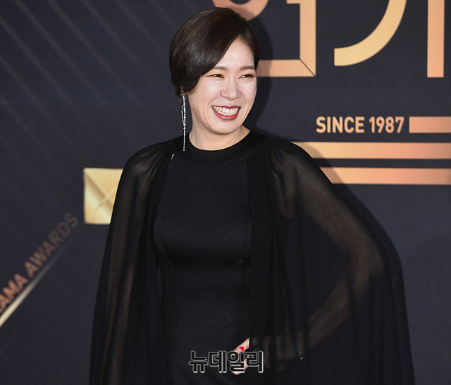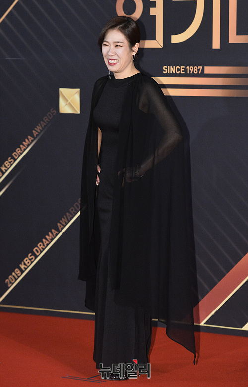 배우 염혜란이 31일 오후 서울 여의도 KBS에서 열린 '2019 KBS 연기대상' 레드카펫 행사에서 포토타임을 갖고 있다.