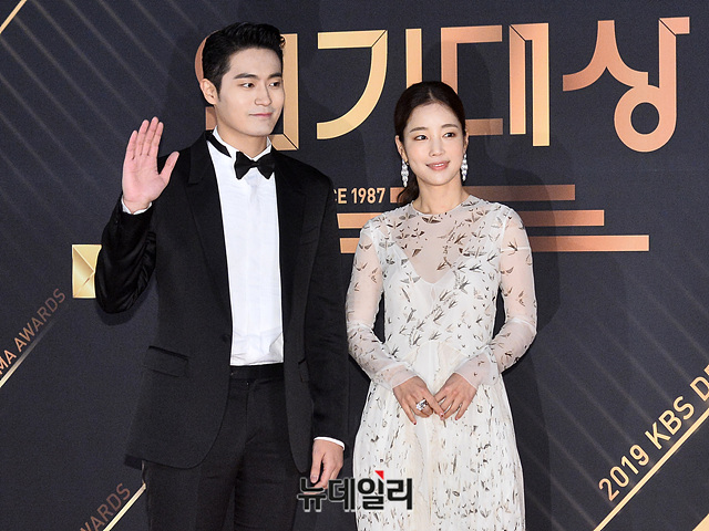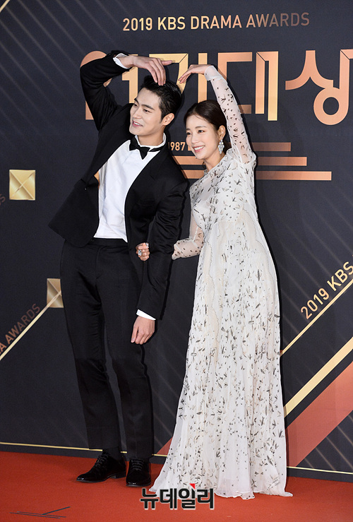 배우 차서원(왼쪽), 기은세가 31일 오후 서울 여의도 KBS에서 열린 '2019 KBS 연기대상' 레드카펫 행사에서 포토타임을 갖고 있다.