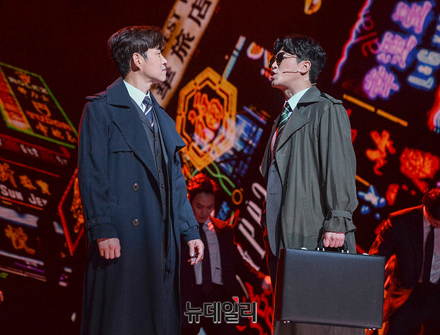 [포토] 뮤지컬 '영웅본색' 하이라이트 시연하는 유준상-박민성