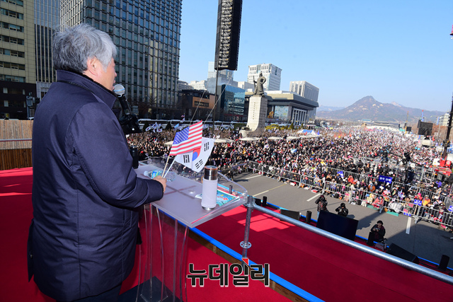 중국발 미세먼지로 하늘이 뿌옇던 지난 4일, 광화문에는 5만여 인파가 모여 “문재인 퇴진”을 외쳤다. ‘문재인 하야 범국민 투쟁본부’가 주최한 집회에는 김동길 연세대 명예교수, 전광훈 목사가 나와 “대한민국을 위해 목숨을 걸자”고 외쳤다.
