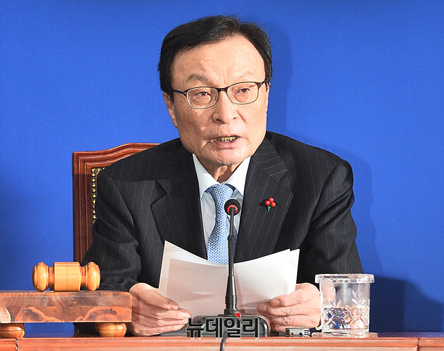 이해찬 더불어민주당 대표가 6일 오전 국회에서 열린 최고위원회의에서 모두발언을 하고 있다.