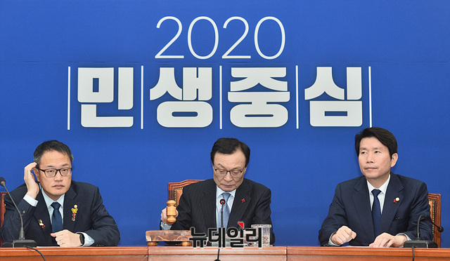 이해찬 더불어민주당 대표가 6일 오전 국회에서 열린 최고위원회의에서 의사진행을 하고 있다.
