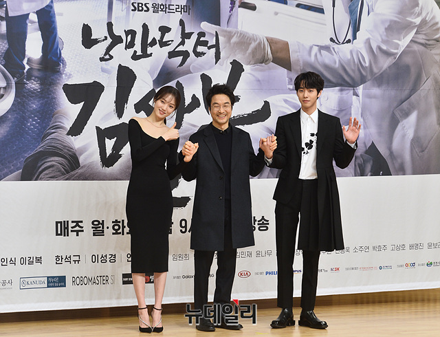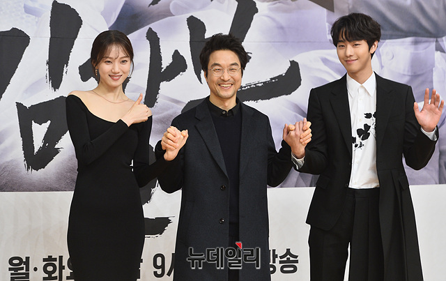 배우 이성경(왼쪽부터), 한석규, 안효섭이 6일 오후 서울 양천구 SBS에서 열린 월화드라마 '낭만닥터 김사부 2' 제작발표회에서 포토타임을 갖고 있다.