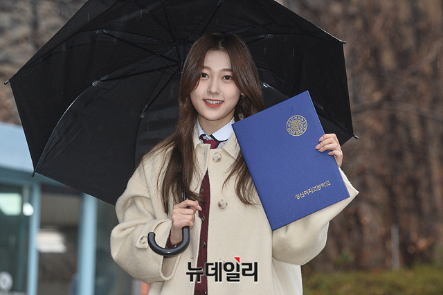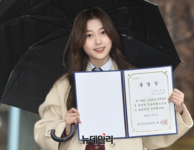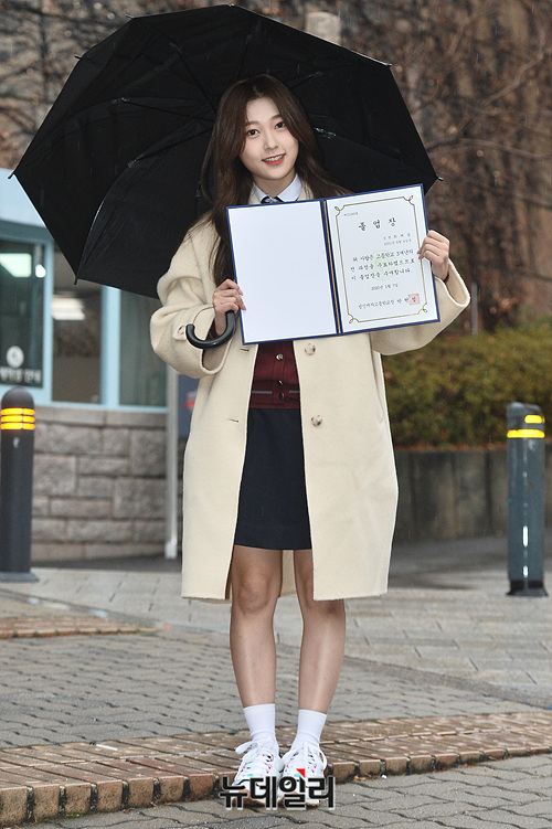 걸그룹 '이달의소녀(LOONA)' 멤버 최리가 7일 오전 서울 성북구 성신여자고등학교에서 열리는 본인의 졸업식에 참석해 졸업장을 들고 포즈를 취하고 있다.