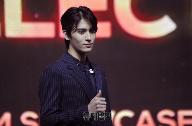 보이그룹 SF9 멤버 태양이 7일 오후 서울 용산구 블루스퀘어 아이마켓홀에서 열린 첫 정규앨범 'FIRST COLLECTION' 발매 기념 쇼케이스에서 포토타임을 갖고 있다.