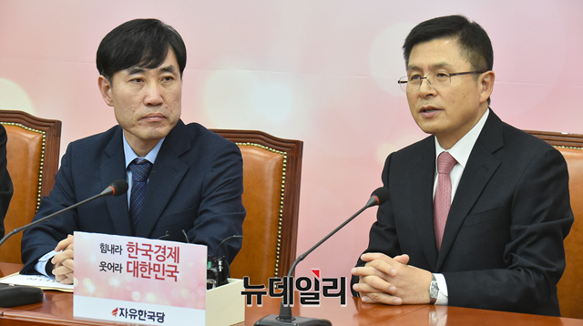황교안 자유한국당 대표가 7일 오후 국회에서 하태경 새로운보수당 책임대표의 예방을 받고 환담을 나누고 있다.