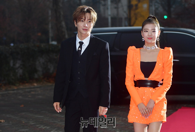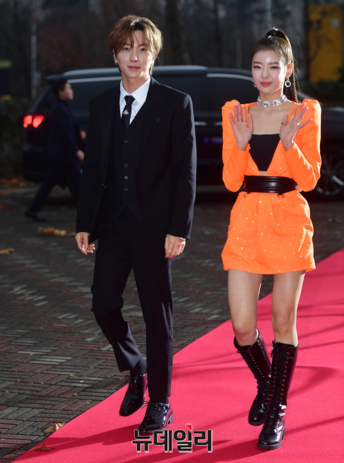 걸그룹 있지 멤버 리아와 이특이 8일 오후 서울 송파구 잠실실내체육관에서 열린 '제9회 가온차트 뮤직어워드'에 입장하고 있다.