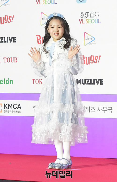 아역배우 오아린이 8일 오후 서울 송파구 잠실실내체육관에서 열린 '제9회 가온차트 뮤직어워즈'에 입장하고 있다.