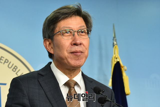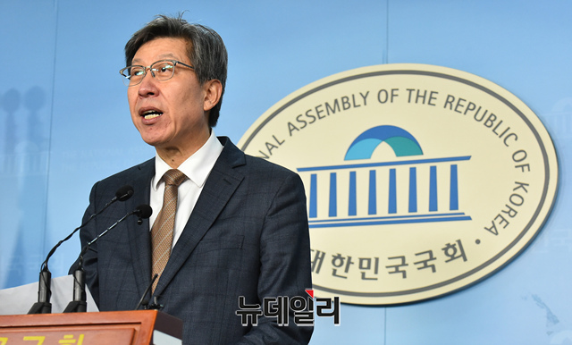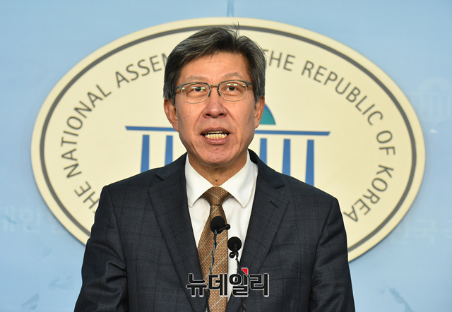 보수 통합을 추진하는 혁신통합추진위원회의 위원장을 맡은 박형준 전 의원이 9일 오후 국회 정론관에서 기자회견을 갖고 있다.