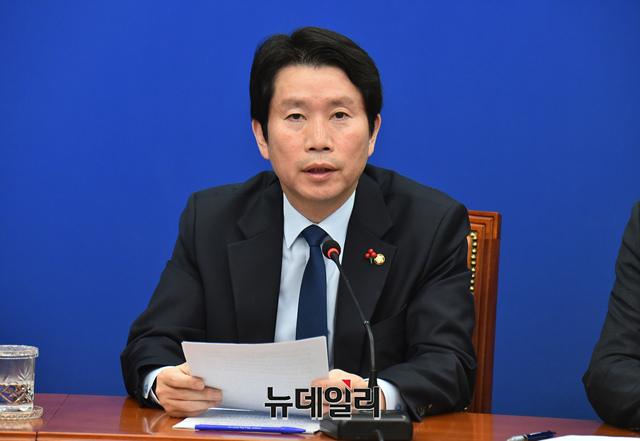 이인영 더불어민주당 원내대표가 10일 오전 국회에서 열린 최고위원회의에 참석해 모두발언을 하고 있다.