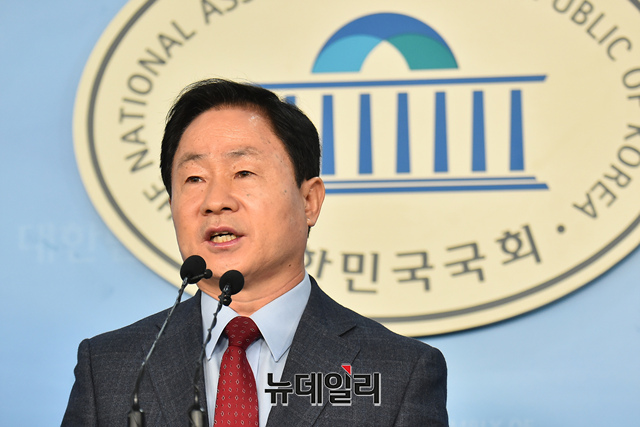 주광덕 자유한국당 의원이 10일 오전 국회 정론관에서 기자회견을 갖고 윤석열 검찰총장의 핵심 측근을 대거 좌천시킨 추미애 법무부 장관의 검찰 인사를 비판하고 있다.