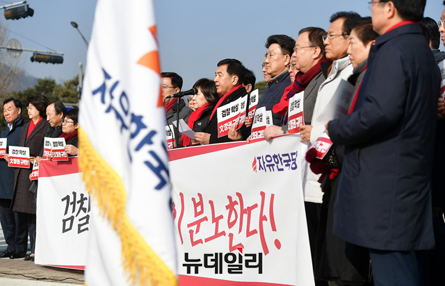 [포토] 청와대 앞에 모인 자유한국당 "검찰학살, 文정권 규탄"