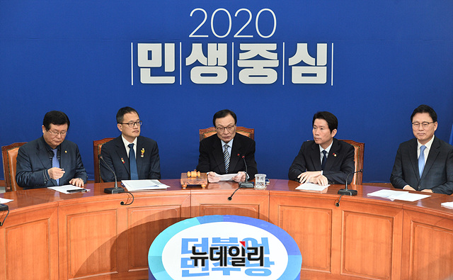이해찬 더불어민주당 대표가 13일 오전 국회에서 열린 최고위원회의에서 모두발언을 하고 있다.