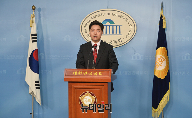 정원석 전 자유한국당 강남을 당협위원장이 13일 오전 국회 정론관에서 '21대 총선 출마 기자회견'을 갖고 있다.
