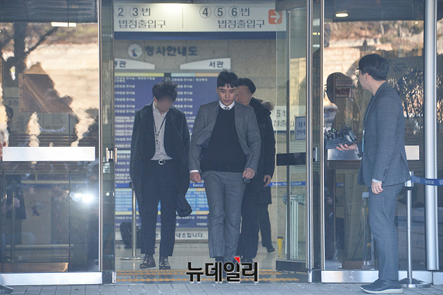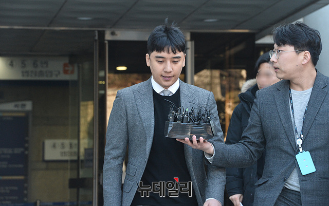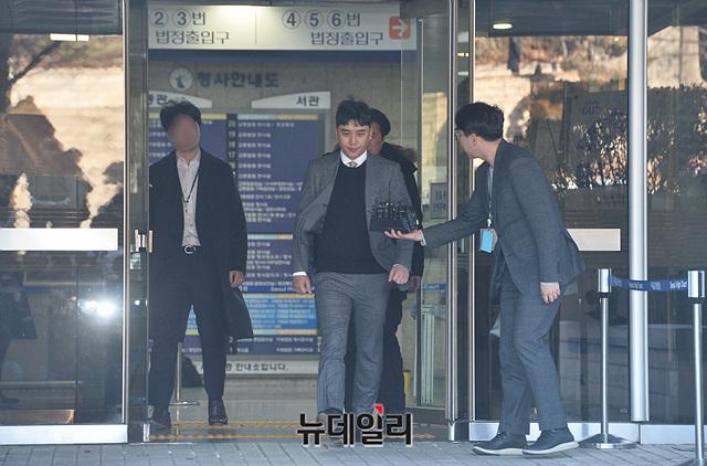 승리는 13일 오전 10시 30분 조사를 받기 위해 법원에 출석했다. 이르면 금일 오후 구속 여부가 결정된다.