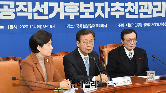 원혜영 더불어민주당 추천관리위원회 위원장이 14일 오전 국회에서 열린 '중앙당공직선거후보자추천관리위원회 제1차 회의'에서 발언을 하고 있다.
