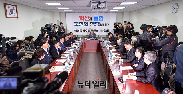 박형준 혁신통합추진위원장이 14일 오전 국회 의원회관에서 열린 '혁신통합추진위원회 1차 회의'에서 모두발언을 하고 있다.