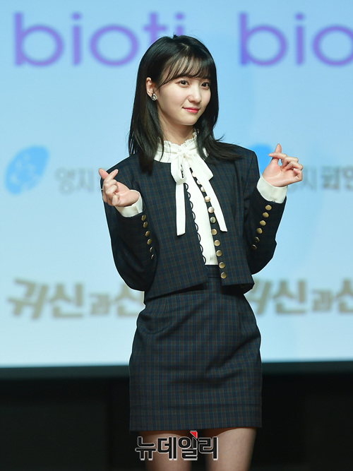 오마이걸 비니가 15일 오후 서울 강남구 일지아트홀에서 열린 웹드라마 '귀신과 산다(극본 최태리, 연출 김동선)' 제작보고회에서 포토타임을 갖고 있다.